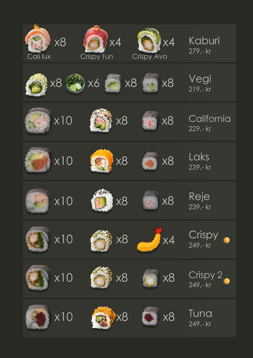 Welcome to Sukuri Sushi, a hidden gem located at Sluseholmen 34, 2450 København, Denmark. This delightful sushi haven offers an inviting atmosphere with freshly prepared dishes that truly please the palate. The menu features a diverse selection of sushi, with standout options like the chef's choice, which promises something special and unique beyond the regular offerings.